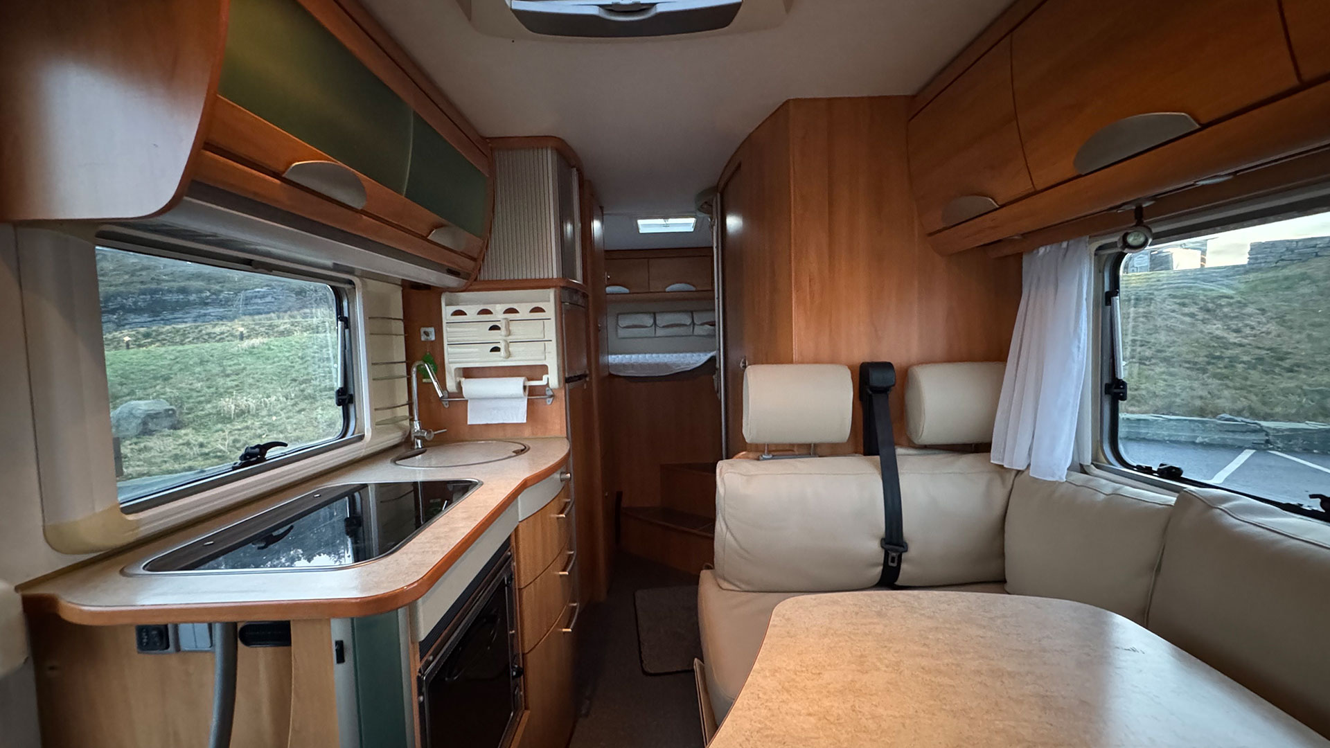 Hymer Star Line 2006, bygget på Mercedes Benz chassis med automatgir og bakhjulsdrift. 2.8L motor med 156 hk. Dette er bobilen for deg som vil ha kvalitet, god plass og pålitelighet – enten du skal på korte helgeturer eller lengre reiser. Dobbeltseng bak: Stor og behagelig seng med romslig garasje under – perfekt for ekstra bagasje, sykler eller campingutstyr. Senkeseng foran: Praktisk for flere reisende eller besøkende gjester. Kjøleskap med separat fryser: Rikelig med plass til mat og drikke. Godkjent fukttest: Ingen fuktproblemer – gir deg ekstra trygghet ved kjøp. Markise: Skap din egen uteplass på sekunder. Hengerfeste: Mulighet for å ta med tilhenger eller sykkelstativ. Truma gassvarme: Effektiv oppvarming for kjølige netter. Gode sommer- og vinterdekk: Klar for alle sesonger. Kjøres på klasse C1 (lett lastebil): Fleksibelt og enkelt for deg med riktig førerkort. Finansiering: Vi tilbyr fleksible finansieringsløsninger tilpasset dine behov, med inntil 100% finansiering fra kr 0,- egenkapital og opptil 15 års nedbetalingstid. Kontakt oss for et skreddersydd tilbud gjennom våre ledende samarbeidspartnere. Frakt og levering: Vi kan være behjelpelig med å frakte bobilen for deg til der du bor mot et pristillegg, ta kontakt med oss hvis du ønsker tilbud inkludert frakt. Vekt og nyttelast – Nøyaktige spesifikasjoner Vekt og nyttelast er viktige faktorer for mange bobileiere. Alle våre bobiler leveres med oppdaterte vektopplysninger, hentet fra vognkort eller teknisk datablad. Har bobilen ettermontert ekstrautstyr, kan vekten avvike noe. Ønsker du nøyaktig informasjon, tilbyr vi veiing av kjøretøyet før levering, slik at du får den eksakte tomvekten på din bobil. Kontakt oss: For mer informasjon eller for å avtale visning, kontakt oss på telefon eller e-post. Vi ser frem til å hjelpe deg med å finne din drømmebobil!