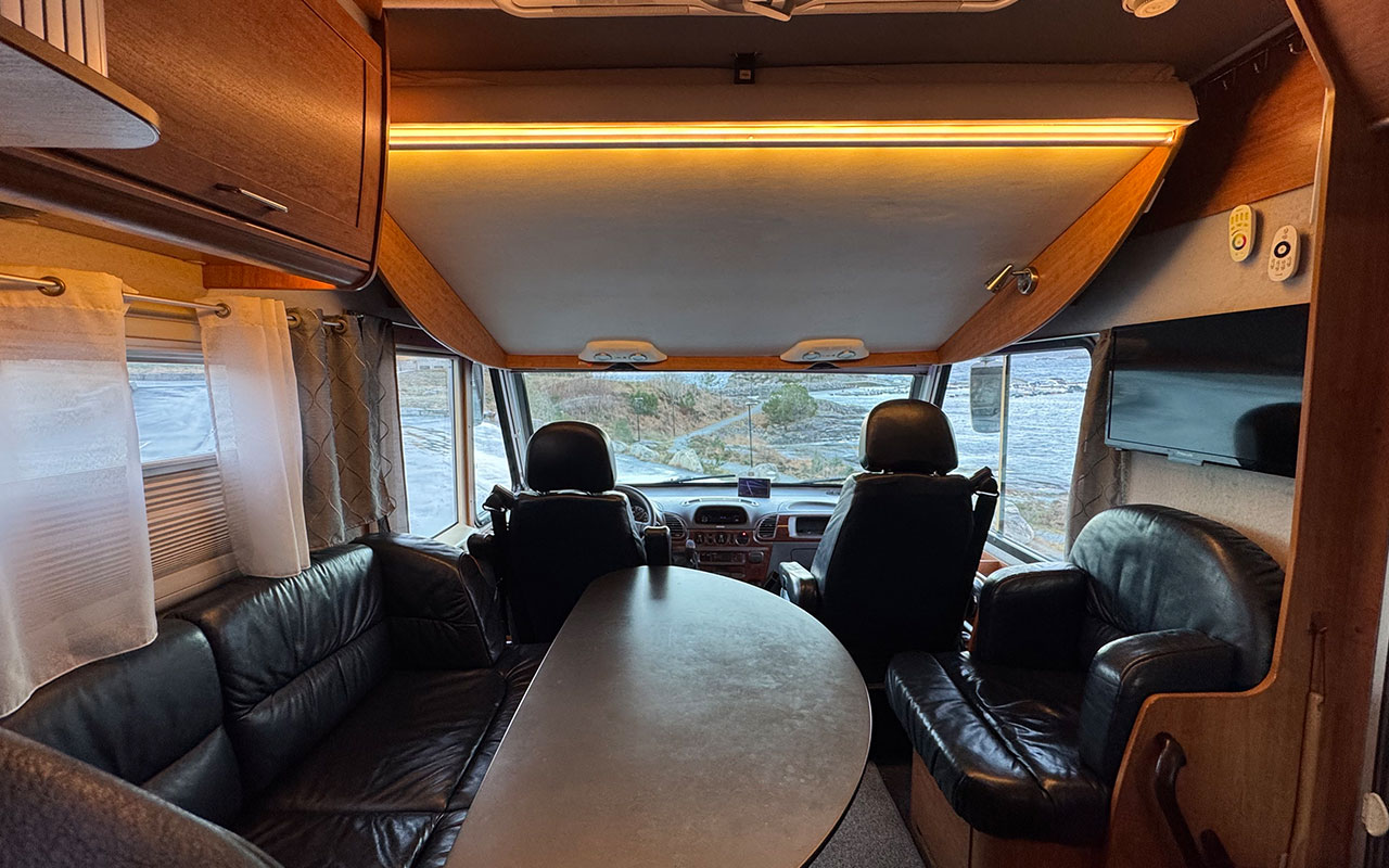 AC i bodel, AC i førerdel, Airbag, Alarm, Alde vannbåren varme, CD-stereo, Cruisekontroll, El. Speil, El. Vindu, Ferskvann, Varmtvann, Gassalarm, Gassomkobler, Gulvvarme, Hengerfeste, Toalett med fast tank, Markise, Kjøleskap m/ egen fryser, Motorvarmer, Myggdør, Navigasjon, Parabol, Pilotstoler, Ryggekamera, Senkeseng, Sentrallås, Skinninteriør, Solcellepanel, Lithium batterier, Stekeovn, Støtteben bak/forran, Teppe, TV, Varme luftbåren, Vinterisolert spillvannstank