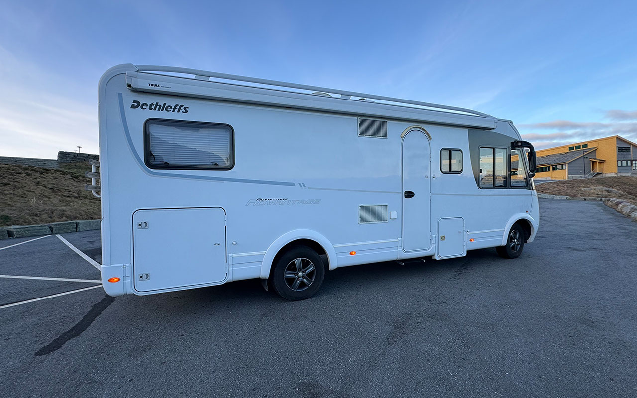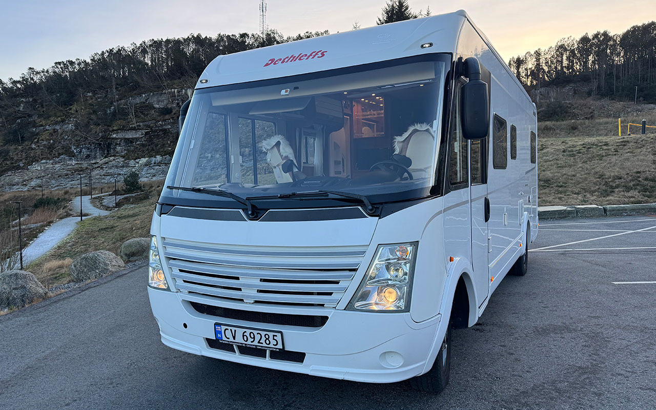 Dethleffs I 7151 – Helintegrert bobil med topp utstyrsnivå! Drømmer du om komfortabel reising og smarte løsninger? Med denne helintegrerte Dethleffs I 7151 får du alt du trenger for en bekymringsfri bobilferie – året rundt! Stor garasje – plass til sykler, campingmøbler og alt du trenger på tur Senkeseng forran Stekeovn Truma luftvarme (oppgradert med digitalt display) Ryggekamera Markise TV Gassalarm Stort kjøleskap med egen fryser Separat dusj Toalett med kassett 2000w inverter Denne bobilen er perfekt for deg som vil ha det lille ekstra – enten du reiser alene, med partner eller familie. Alt er klart for nye eventyr! Kontakt oss for visning eller mer informasjon. Finansiering: Vi tilbyr fleksible finansieringsløsninger tilpasset dine behov, med inntil 100% finansiering fra kr 0,- egenkapital og opptil 15 års nedbetalingstid. Kontakt oss for et skreddersydd tilbud gjennom våre ledende samarbeidspartnere. Frakt og levering: Vi kan være behjelpelig med å frakte bobilen for deg til der du bor mot et pristillegg, ta kontakt med oss hvis du ønsker tilbud inkludert frakt. Vekt og nyttelast – Nøyaktige spesifikasjoner Vekt og nyttelast er viktige faktorer for mange bobileiere. Alle våre bobiler leveres med oppdaterte vektopplysninger, hentet fra vognkort eller teknisk datablad. Har bobilen ettermontert ekstrautstyr, kan vekten avvike noe. Ønsker du nøyaktig informasjon, tilbyr vi veiing av kjøretøyet før levering, slik at du får den eksakte tomvekten på din bobil. Kontakt oss: For mer informasjon eller for å avtale visning, kontakt oss på telefon eller e-post. Vi ser frem til å hjelpe deg med å finne din drømmebobil!